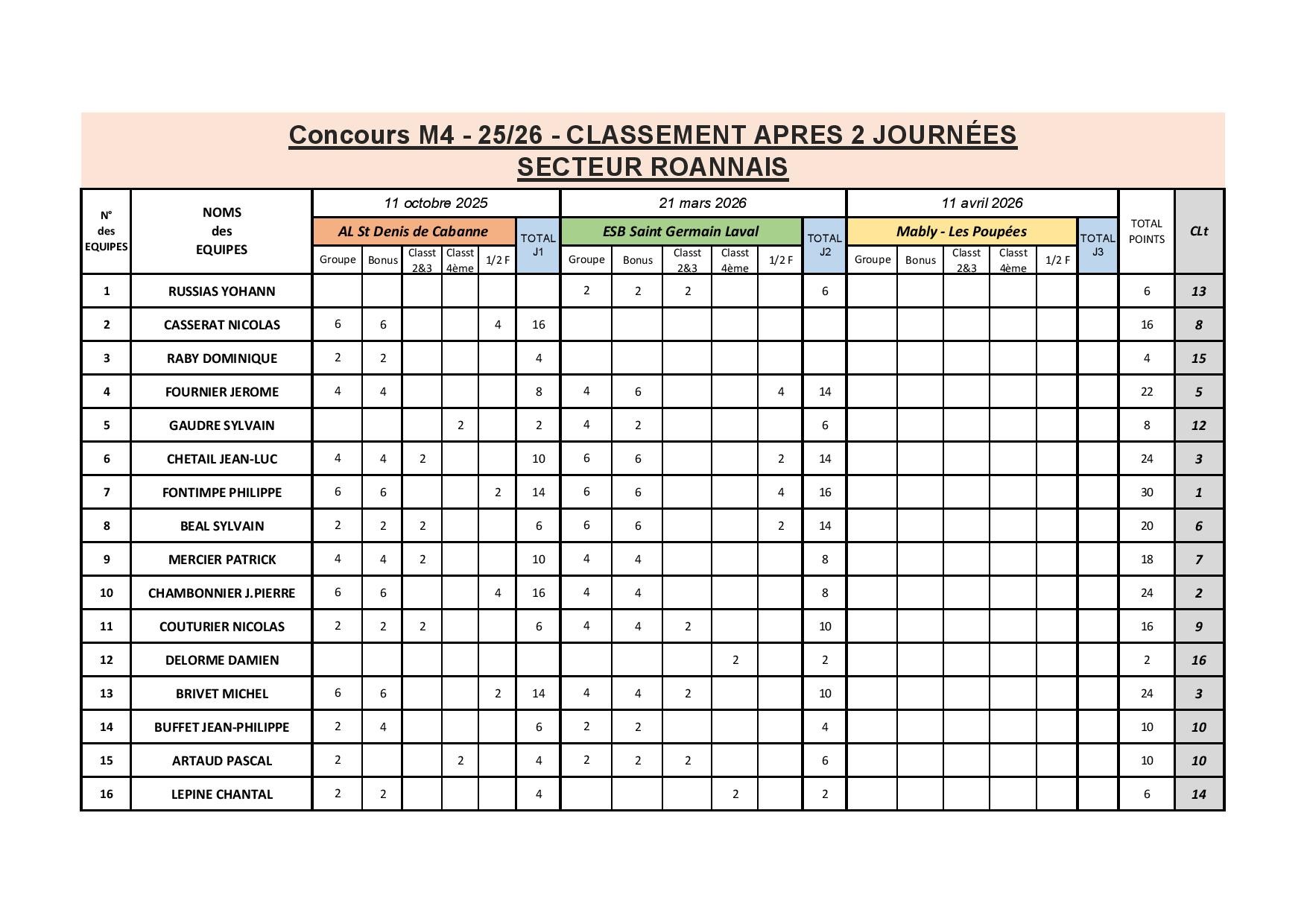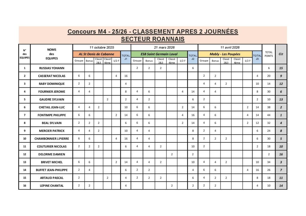 CONCOURS N° 2 - M4 - SECTEUR ROANNAIS - RESULTAT