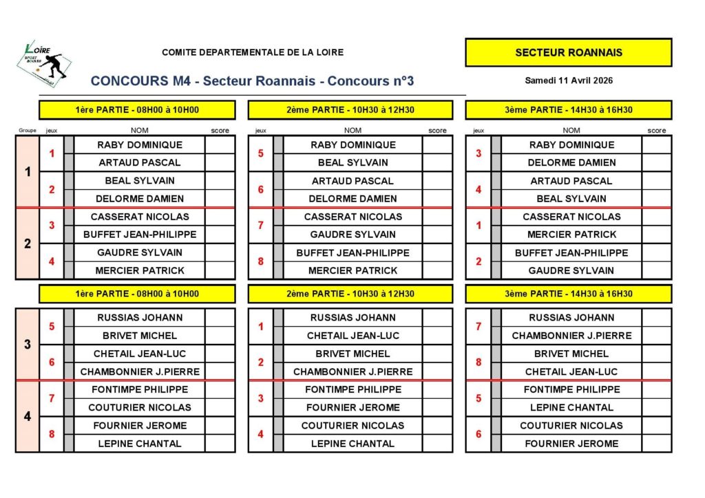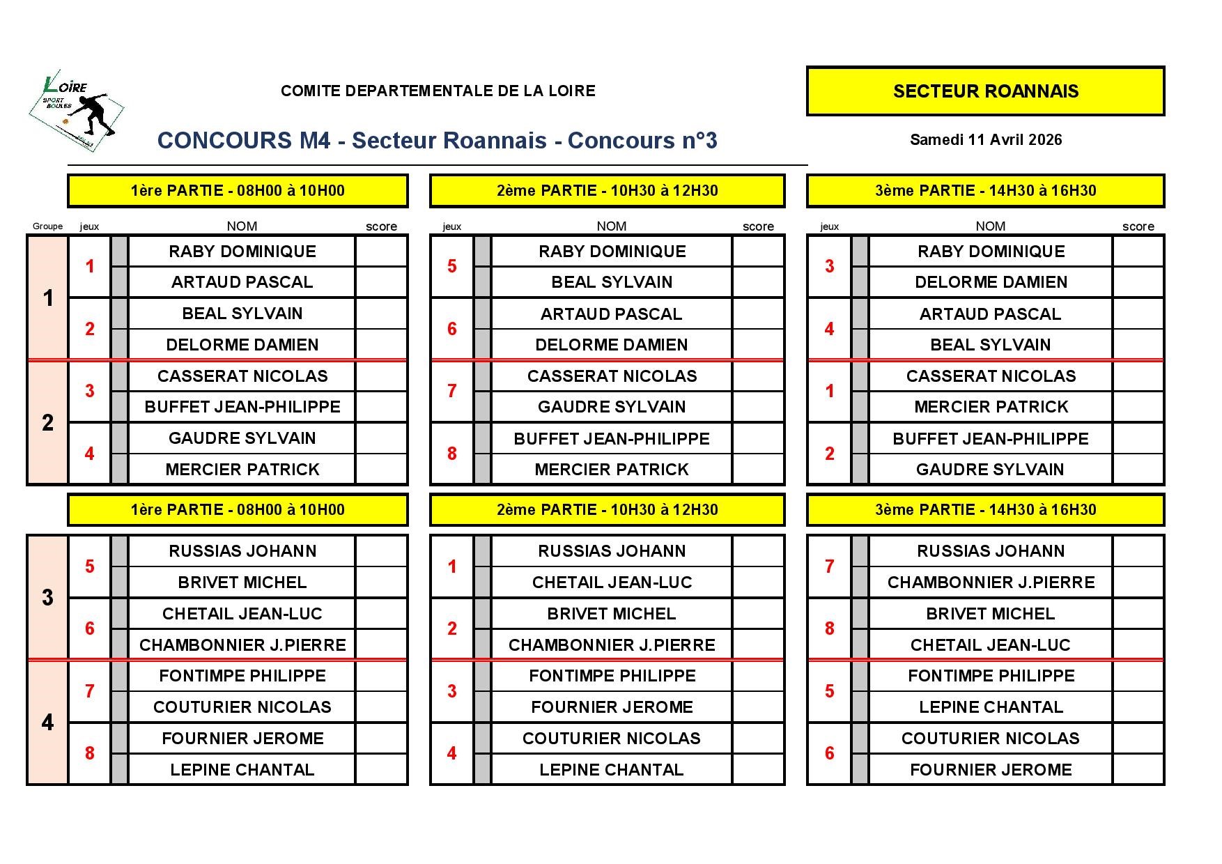 CONCOURS N° 3 - M4 - SECTEUR ROANNAIS - TIRAGE DU 11 AVRIL 26