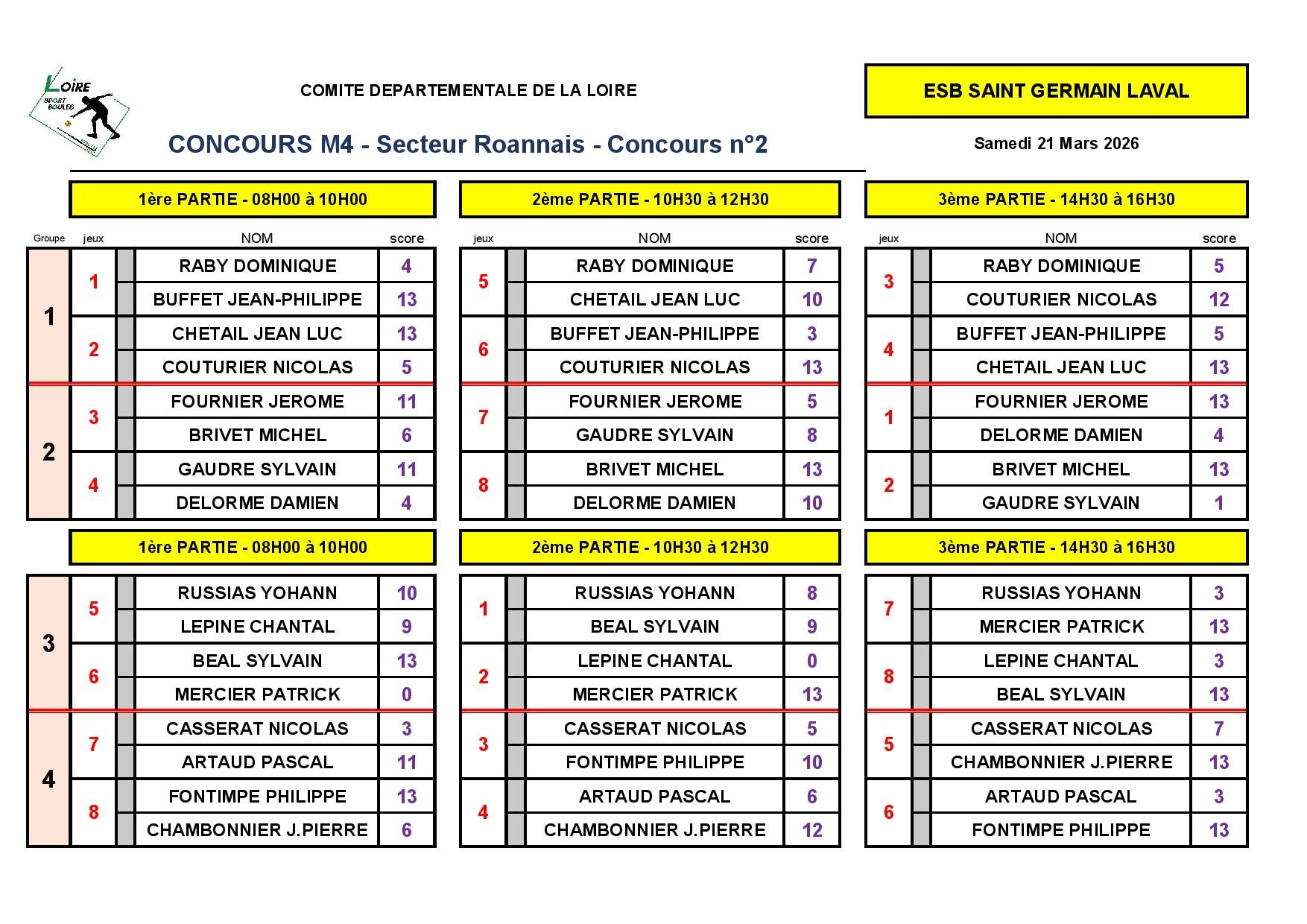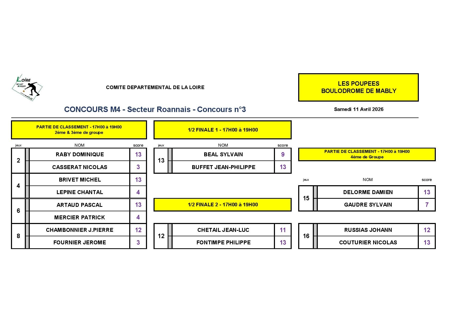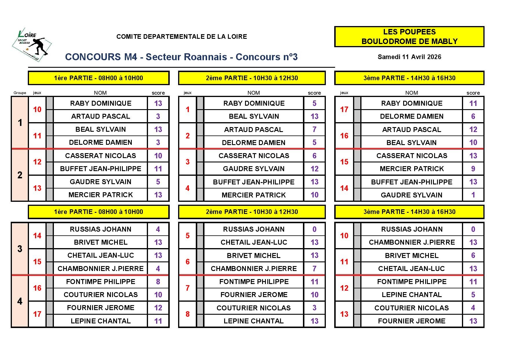 CONCOURS N° 3 - M4 - SECTEUR ROANNAIS - Résultat