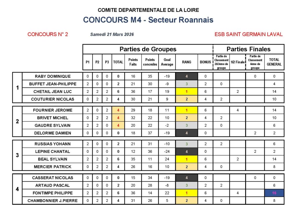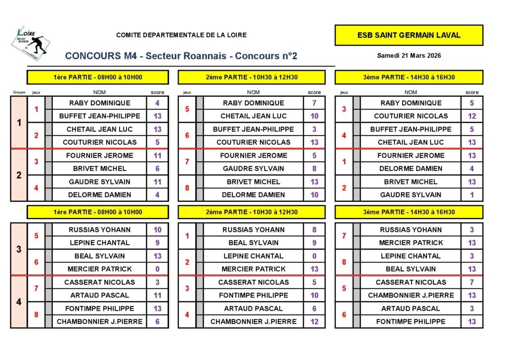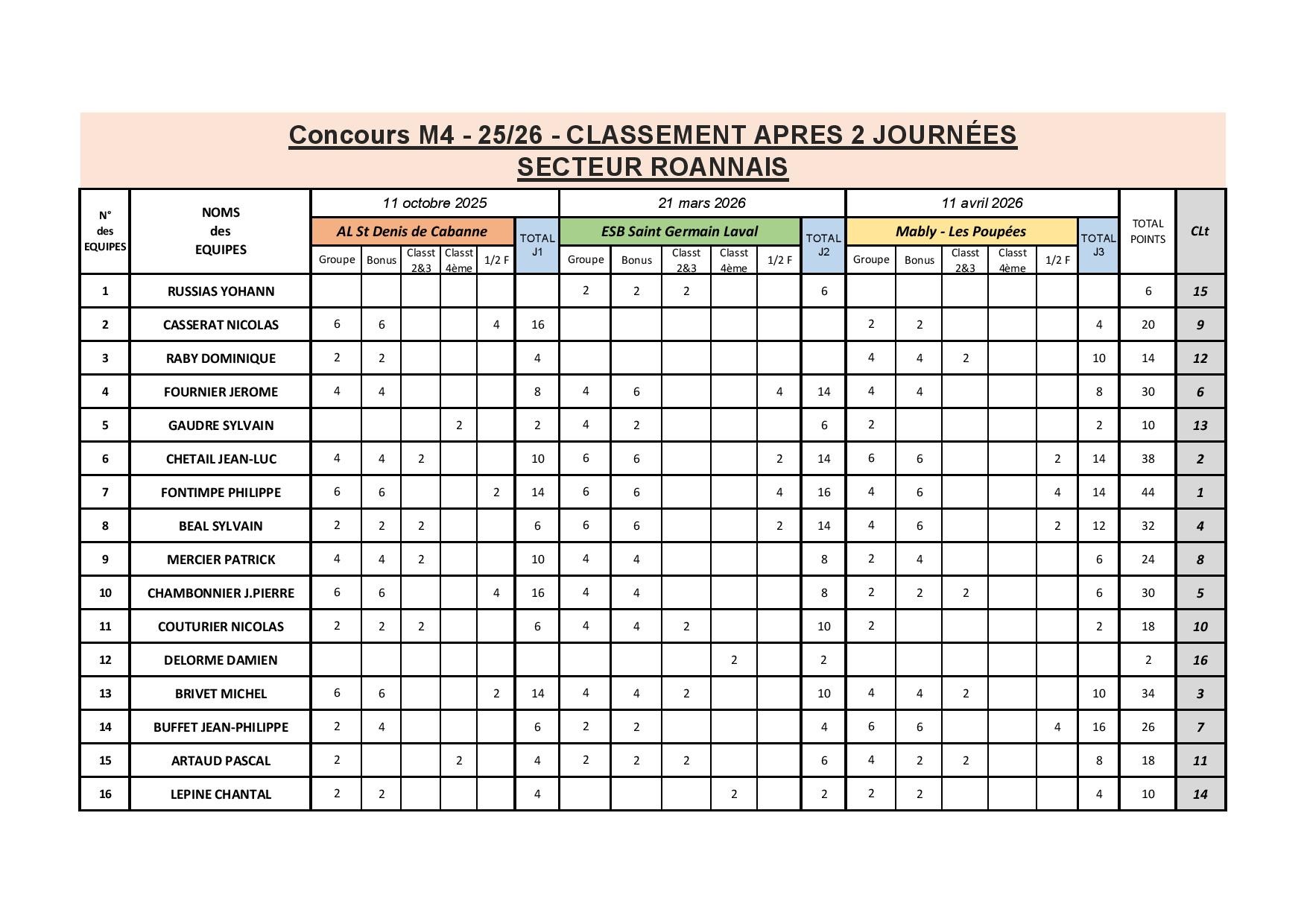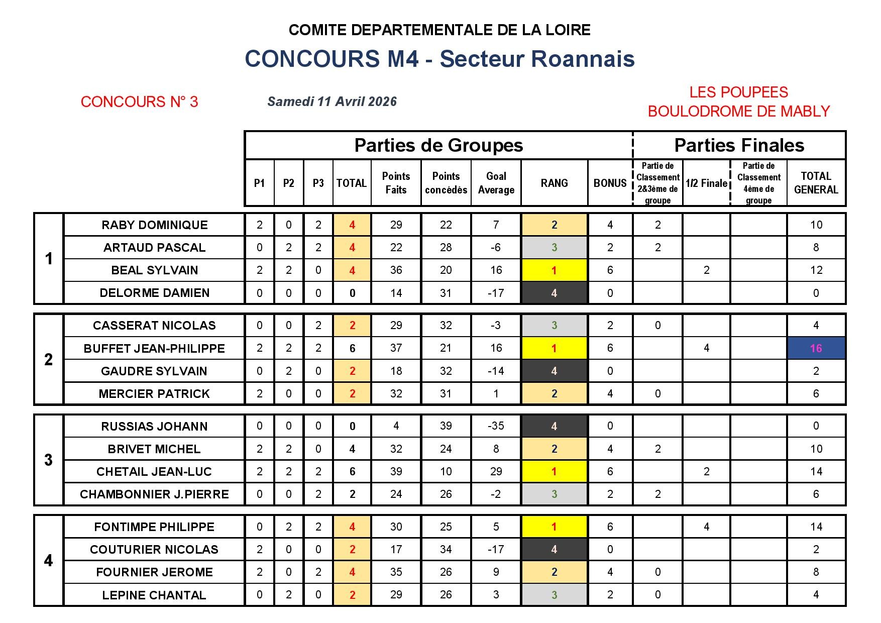 CONCOURS N° 3 - M4 - SECTEUR ROANNAIS - Résultat