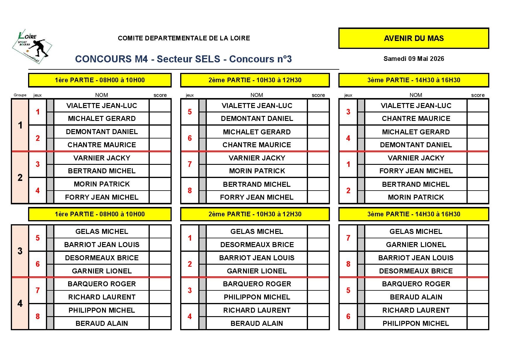 CONCOURS N° 3 - M4 - SECTEUR SELS - TIRAGE DU 09 MAI 2026
