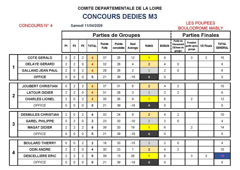 CONCOURS N° 4 - M3 - LES POUPEES - 11 AVRIL 2026 - RESULTAT